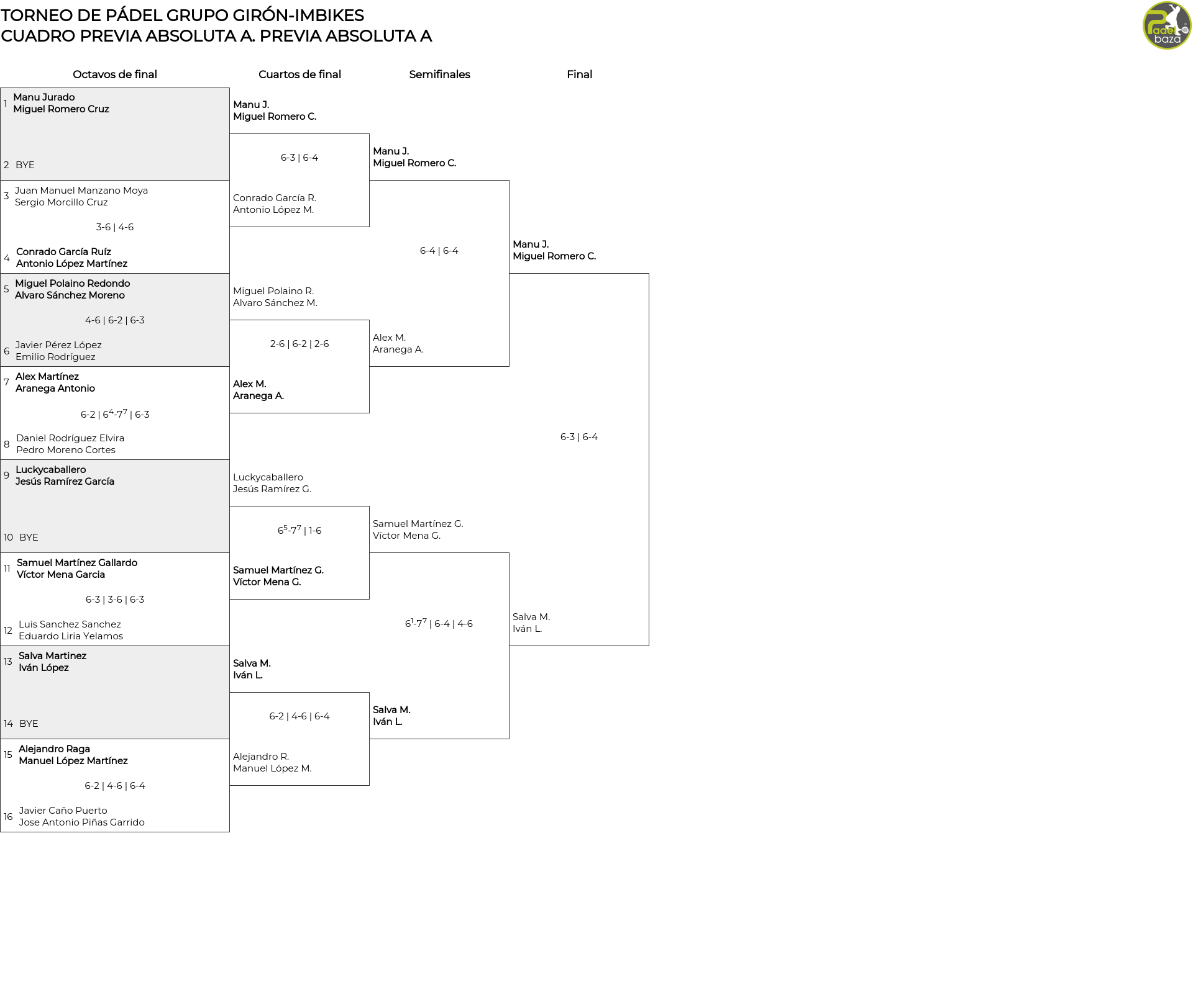 TORNEO DE PÁDEL GRUPO GIRÓN-IMBIKES
