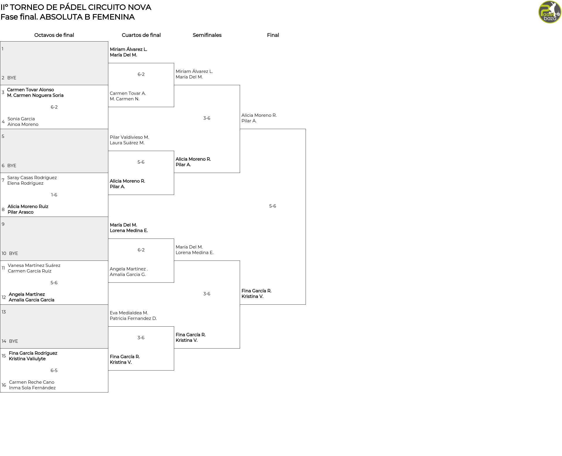 Cuadro principal ABSOLUTA B FEMENINA